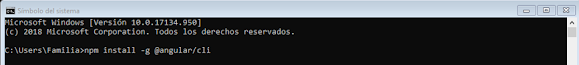 Después de instalado, se puede configurar la instalación correcta con el comando ng versión: